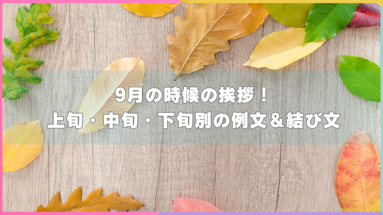 この記事では、9月全体で使える基本の表現から、上旬・中旬・下旬ごとの使い分け、ビジネス・プライベートそれぞれのシーンに合った文例、そして結びの言葉まで網羅的にご紹介。